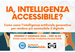 L’evento, organizzato congiuntamente da Fondazione Pensiero Solido, IWA Italy e Accessibility Days, ha riunito in diretta online alcuni dei principali protagonisti italiani del mondo dell’accessibilità digitale e dell’intelligenza artificiale, offrendo una panoramica molto ampia, pragmatica e a tratti visionaria sul rapporto tra IA e inclusione. L'articolo Intelligenza Accessibile: l’evento del 9 gennaio 2026 celebra la Legge Stanca e guarda al futuro dell’IA inclusiva proviene da Webaccessibile.org.